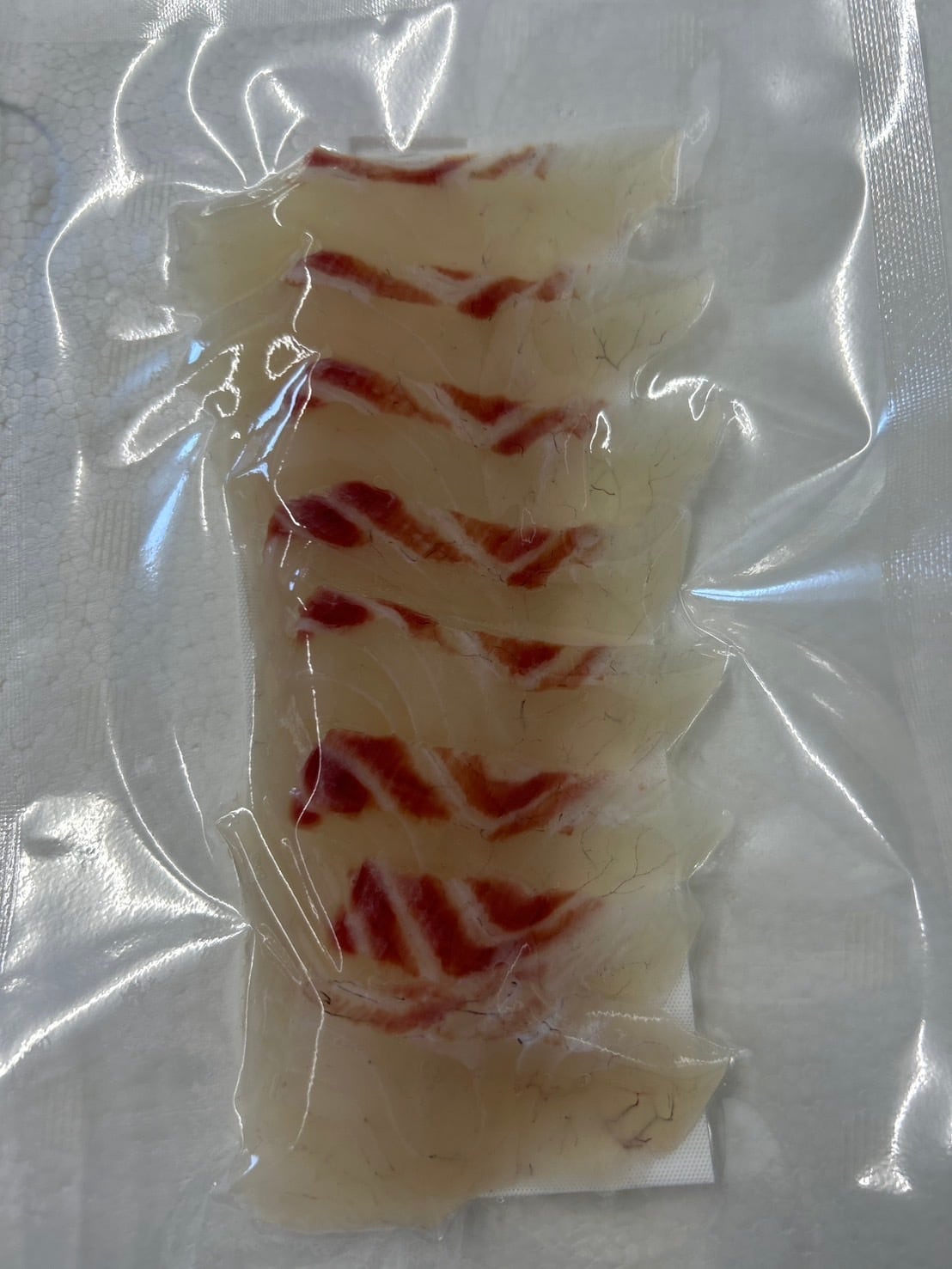 朝採れの駿河湾産マダイを新鮮なうちに捌いてスライス、真空急速冷凍しました。