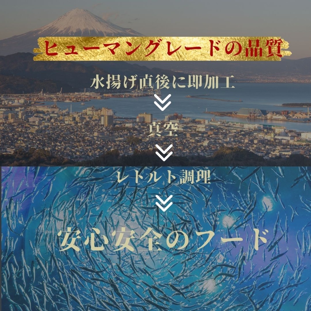 ②水揚げ直後に即加工→素焼き→真空→レトルト調理の安心安全のペットフード