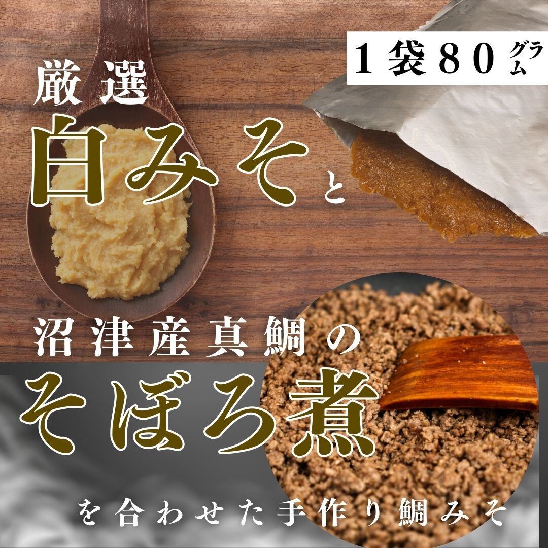 沼津育ちのマダイをふんだんに使い、手作りでそぼろ煮にし、厳選した白みそと和えました。