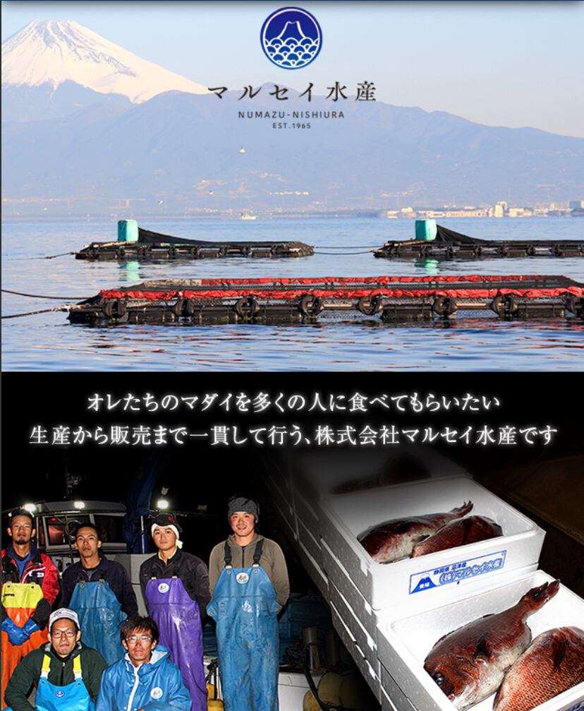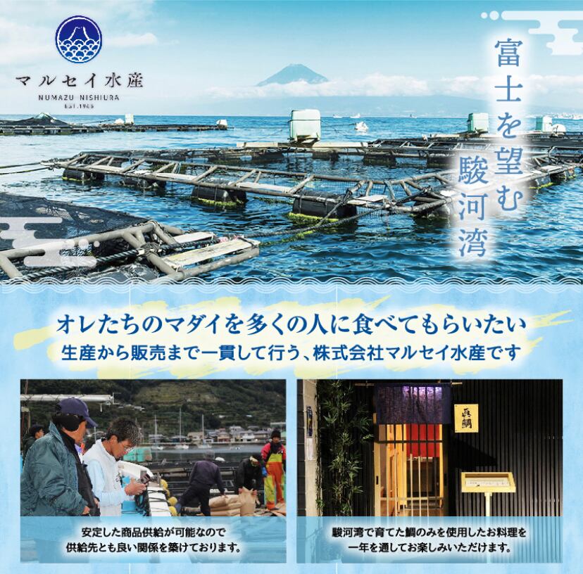 駿河湾の中でも、水質がきれいな沼津西浦地区で2年かけて育てたマダイ