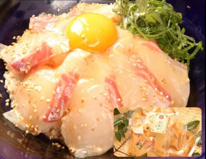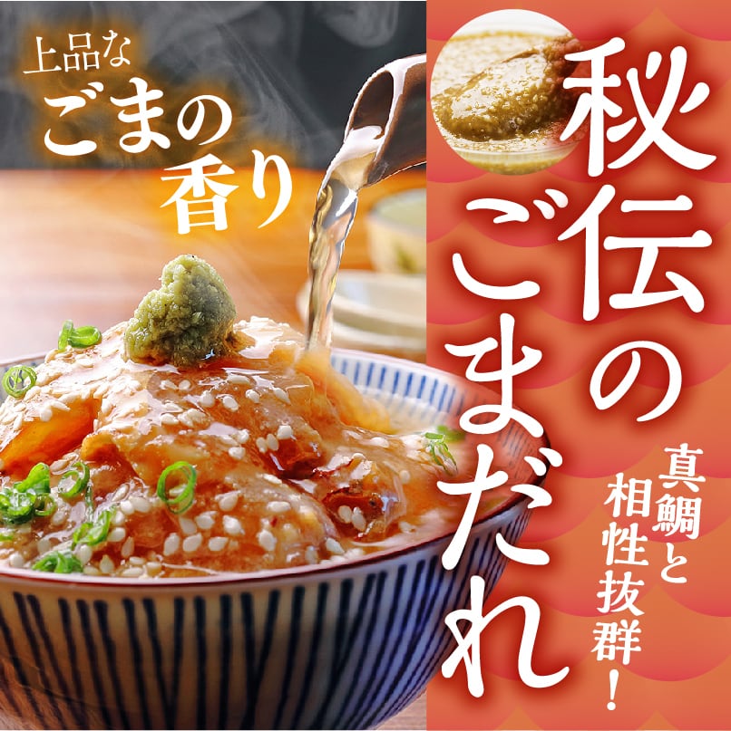 特製ごまだれにマダイの切り身をしっかり漬け込んでいるのでもっちりとした食感を楽しめます。