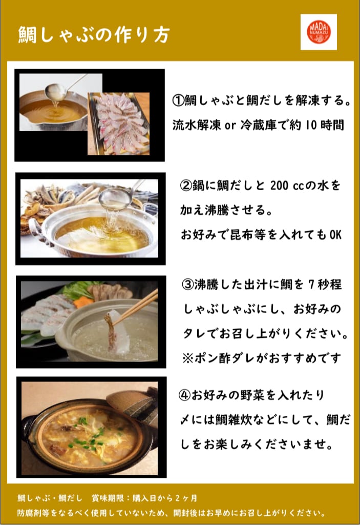 防腐剤や化学調味料等はなるべく使っていないので、鯛本来の旨味を堪能できます。